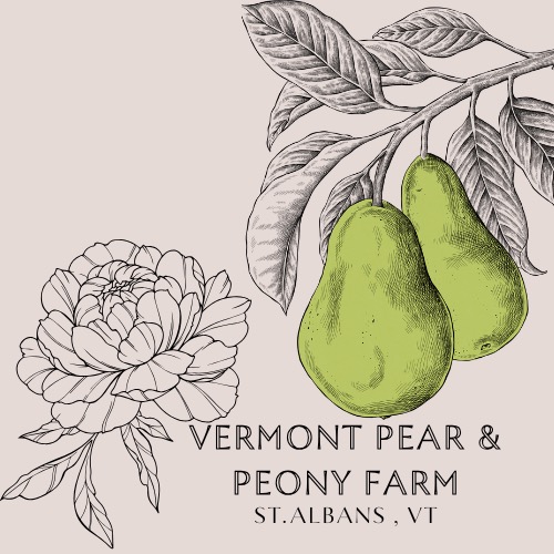 Vermont Pear & Peony Farm is a 20-acre pollinator habitat with roots deeply planted in St. Albans, VT. The farm features a heritage orchard of pear and apple dating to the late 1700’s. Historical records document the property as beginning at a point “in the garden of the widowers dower”… a dower being a portion of land/estate left to a widow to provide for herself.